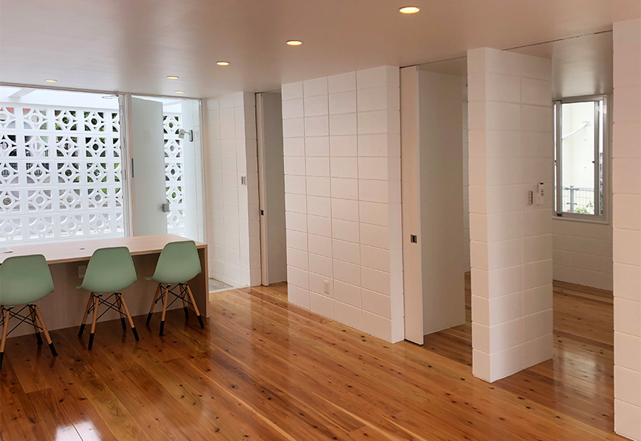 建築費用が高騰している昨今、予算を合わせる事が難しくなってきています。アトリエハコではお客様に手の届く価格でのコンクリートブロック造(CB造)の住宅を提案しています。好評だったブロックの家をシリーズ化することに。花ブロックでデザインを取り入れながら、低価格で外人住宅の様な雰囲気の魅力的なデザイン住宅を実現します。また、台風などにも強く沖縄の気候にも適しています。