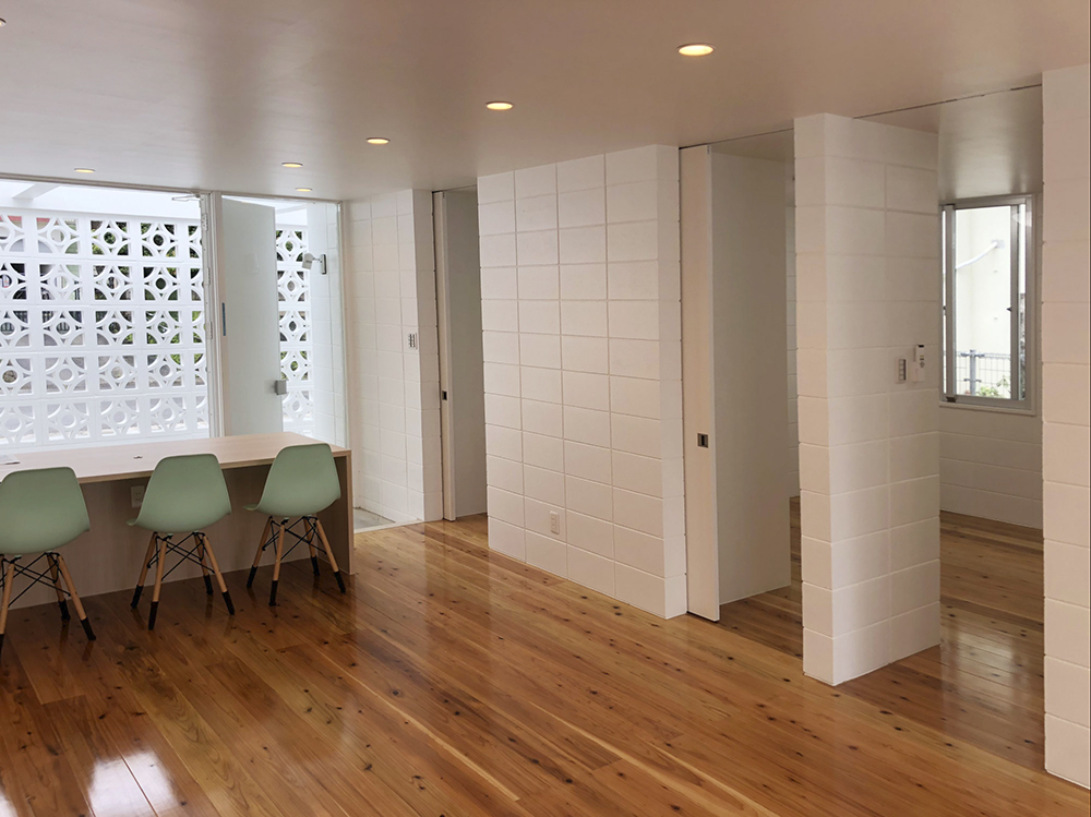 建築概要 ■建築場所:うるま市石川 ■用途:住宅 ■階数:平屋 ■延べ床面積:103.89m2 ■建築面積:106.95m2