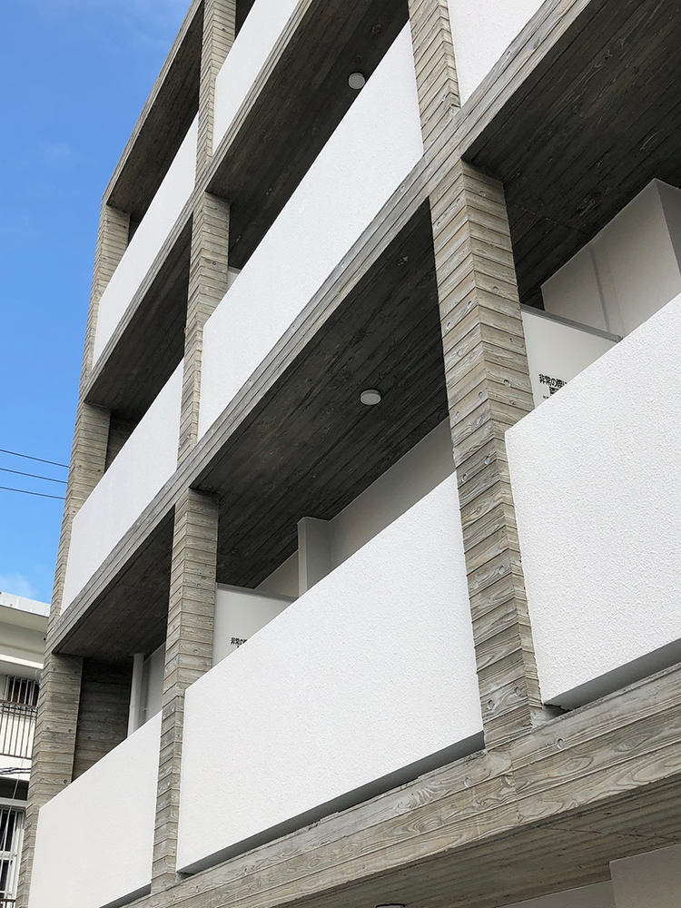 建築概要 ■建築場所:那覇市小禄 ■用途:集合住宅 ■階数:4階建て ■延べ床面積:395.66m2 ■建築面積:199.75m2