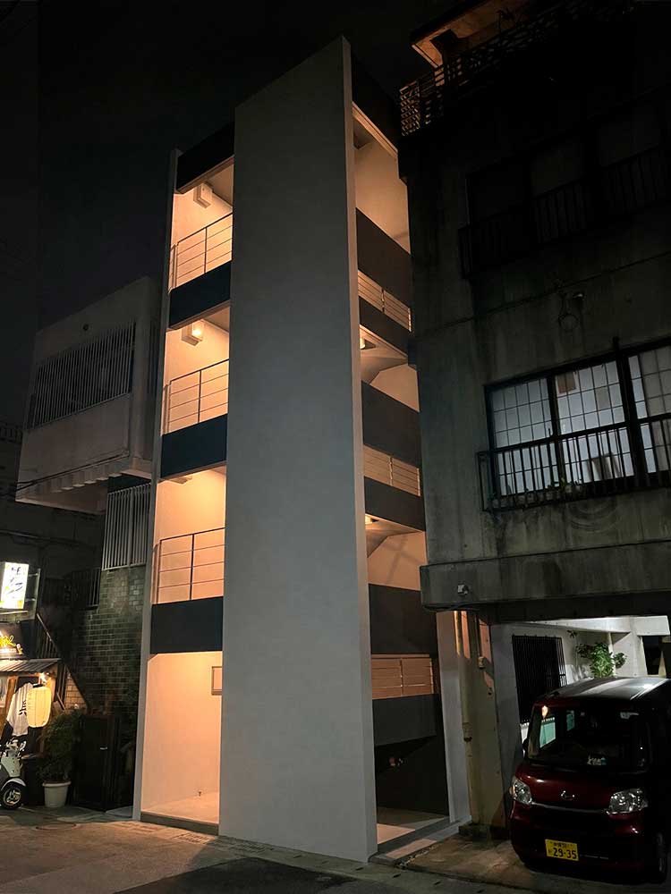 建築概要 ■建築場所:那覇市前島 ■用途:飲食店 ■階数:4階建て ■延べ床面積:239.08m2 ■建築面積:59.77m2